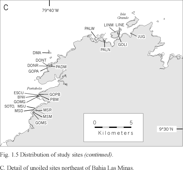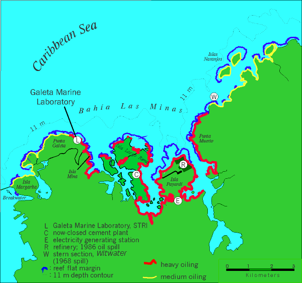 In April, 1986 a major oil spill polluted an area of coral reefs, mangrove forests, and grassbeds along the Caribbean coast of the Republic of Panama. The area affected included a biological reserve of the Smithsonian Tropical Research Institute (STRI) where baseline biological and environmental data had been collected for the previous 15 years. Shortly after the spill, a grant to study the effects of the spill was received from the Minerals Management Service of the United States Department of the Interior. Data was then collected from May of 1986 to October of 1991 and the results of the study were published as a technical report and as an executive summary of the MMS.