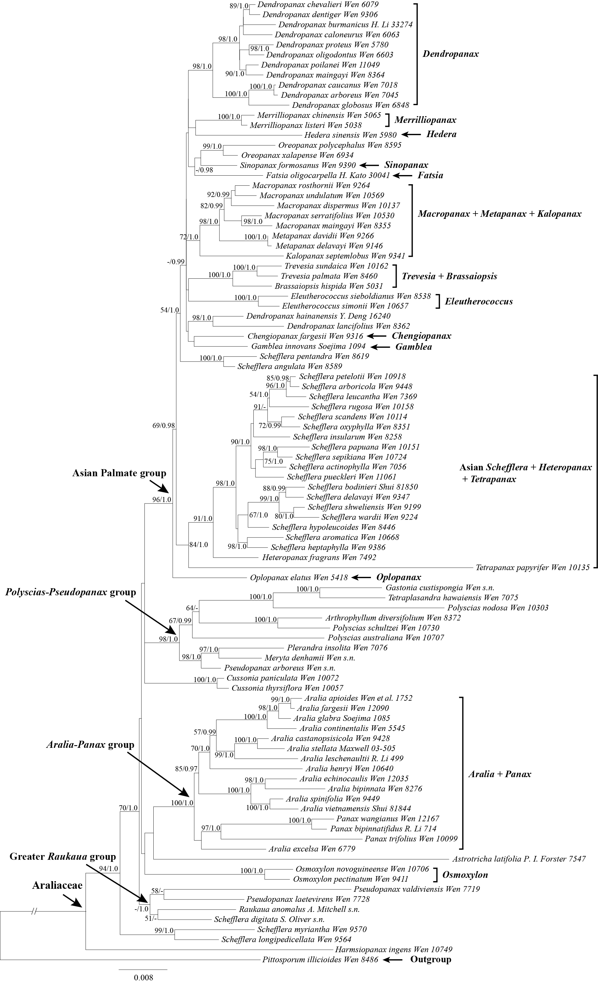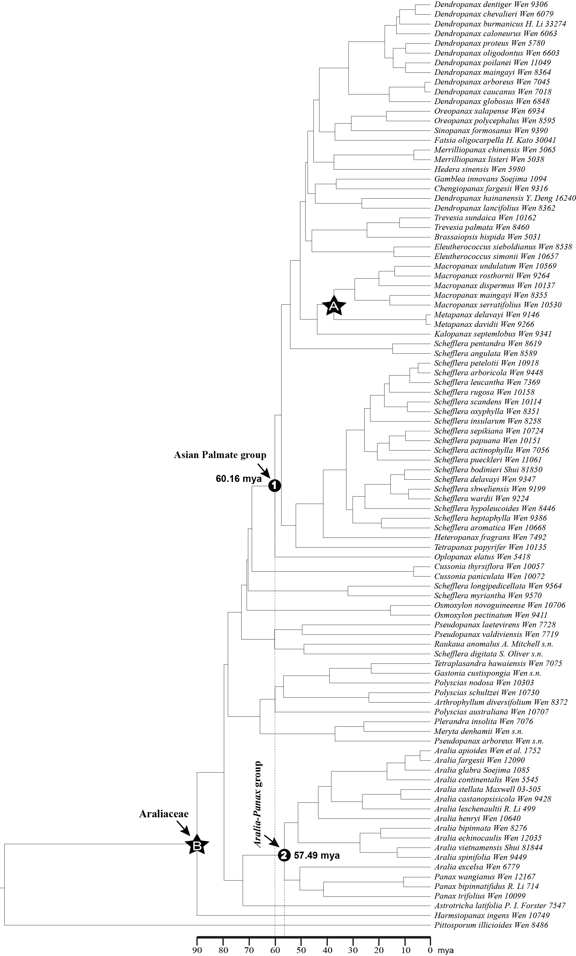 Li, Rong and Wen, Jun. 2016. [Dataset] Phylogeny and diversification of Chinese Araliaceae based on nuclear and plastid DNA sequence data. Distributed by Washington, DC: Smithsonian National Museum of Natural History. <a href="https://doi.org/10.5479/data_nh/10088/31958">https://doi.org/10.5479/data_nh/10088/31958</a>.